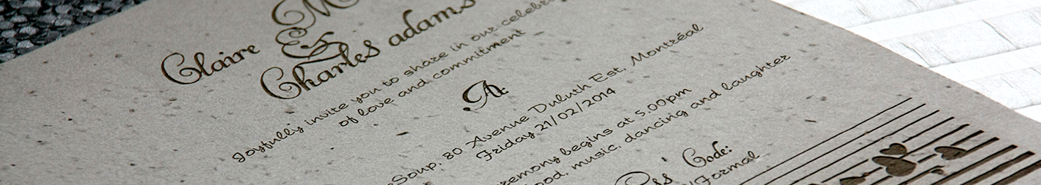 The options include: folded invitations, stand alone invitations (with the option of including pockets), as well as all in one integrated invitations. Along with these options, we also offer you the choice to have your invitations ink printed, laser cut or laser engraved.