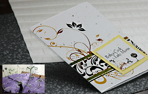 Consider our ecological invitations for invitations that will keep on giving. If your are environmentally conscious, and or just want to give your guests a memorable gift, this is your option; the card that keeps on giving.