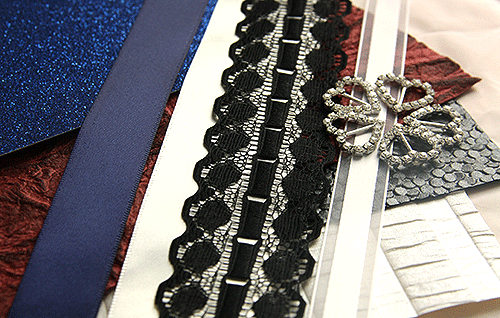 Our cards come alive through the combination of various textures, textiles and papers. The cards are then embellished, while paying special attention to the finest of details. All this leads to final piece becoming more than just an invitation. Your final product becomes a work of art, with you at its centre.